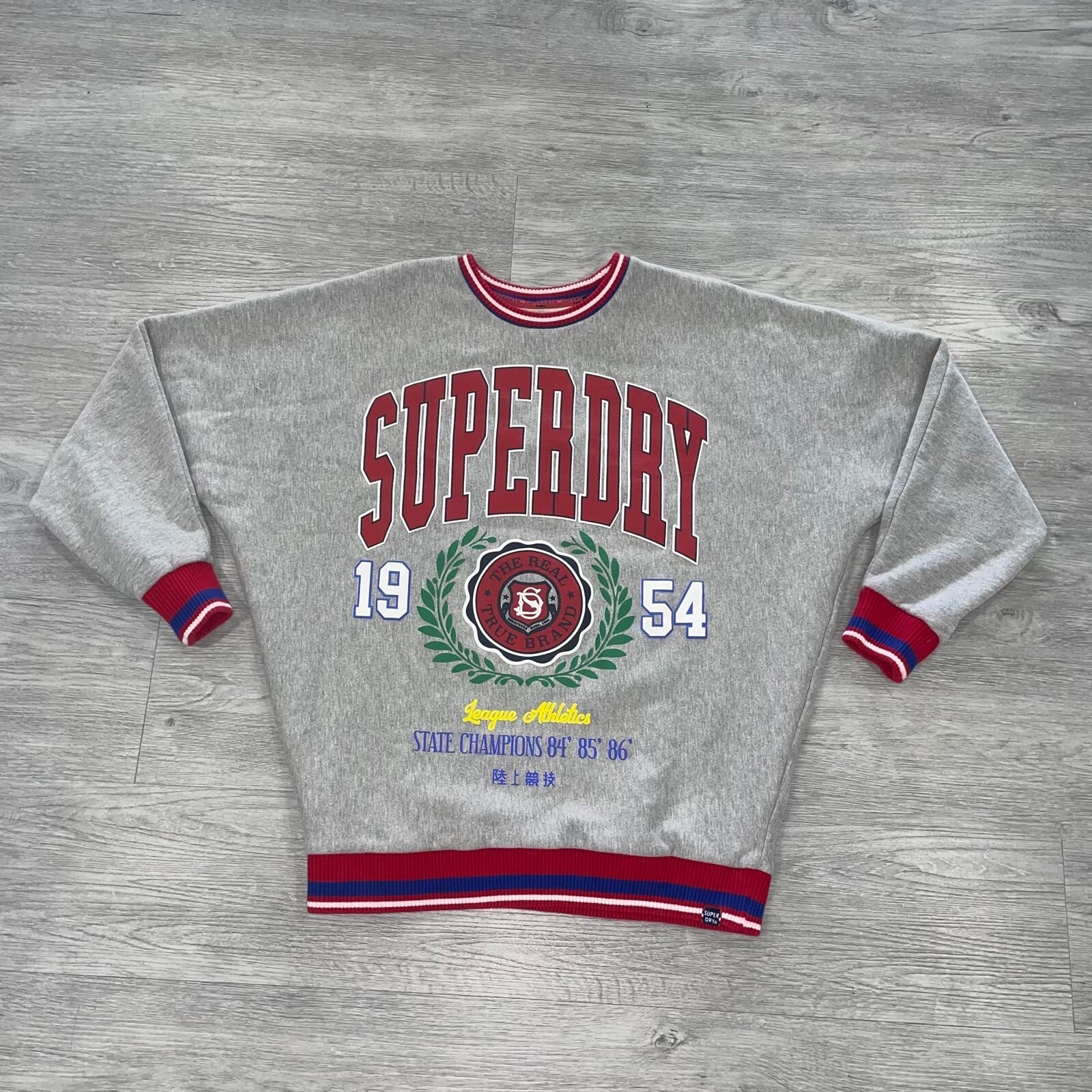 Superdry Women's Size 6 Sweatshirt Jumper Gray Long Sleeve Crew Neck Logo